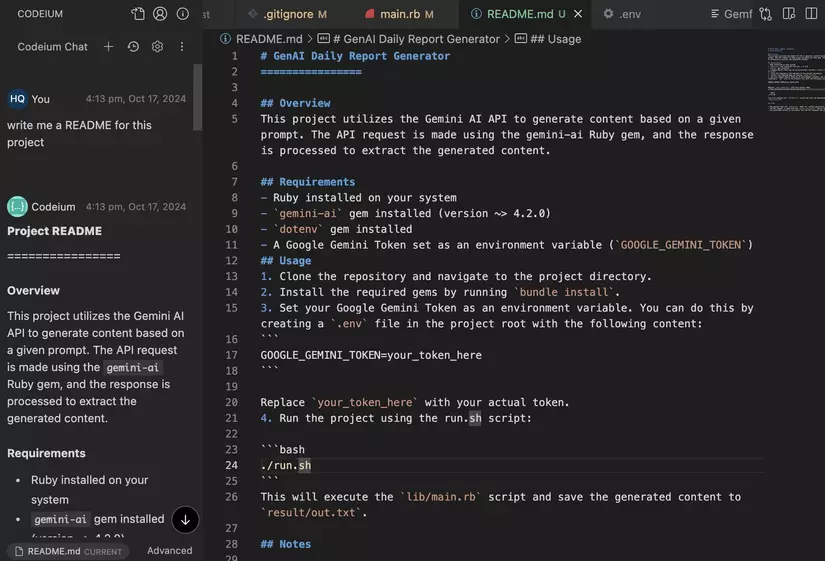 READMEを書くのも面倒なので、AIを使って簡単に生成します。
